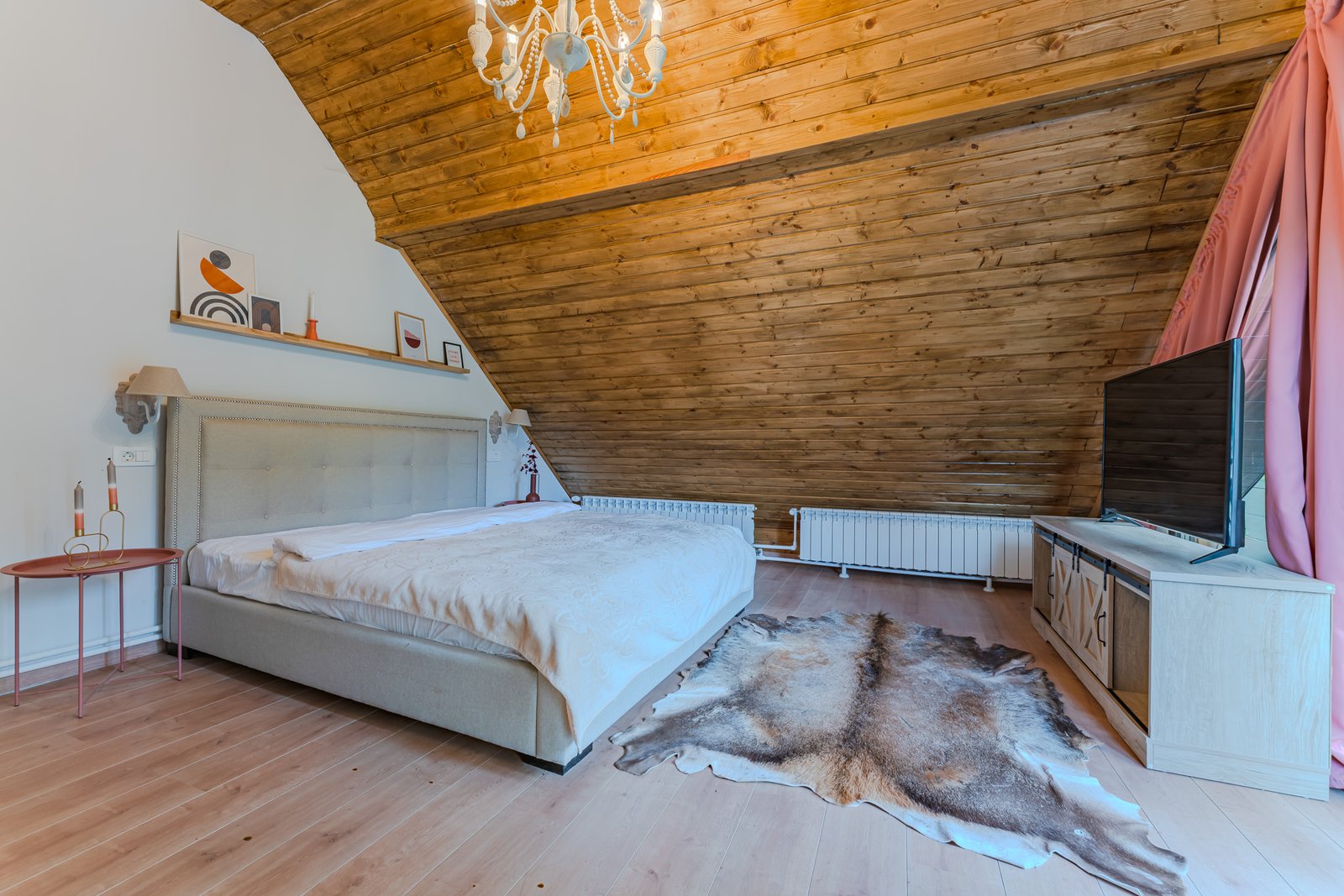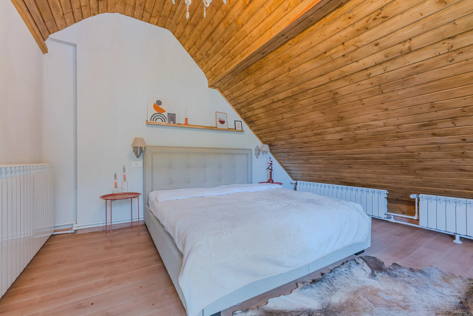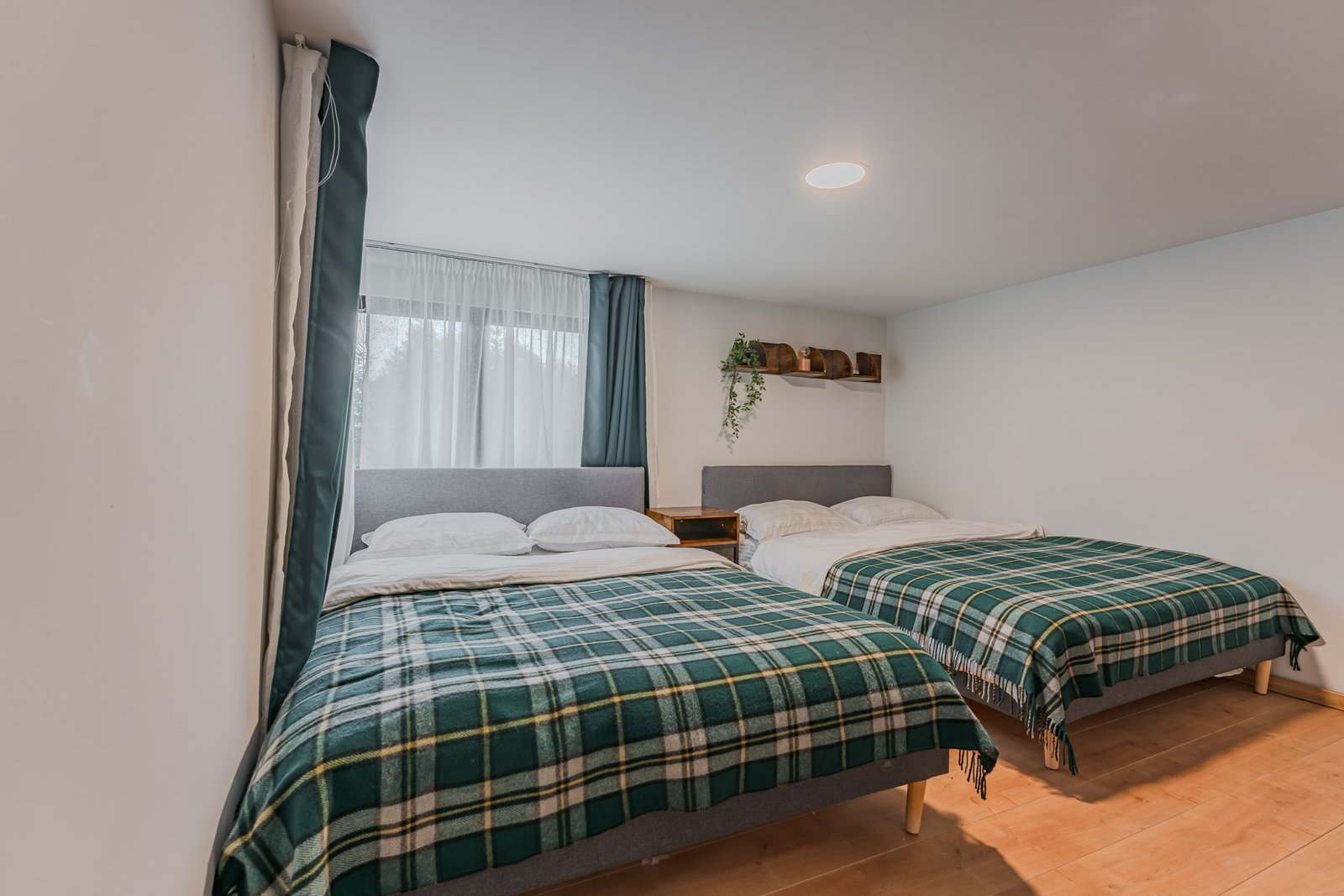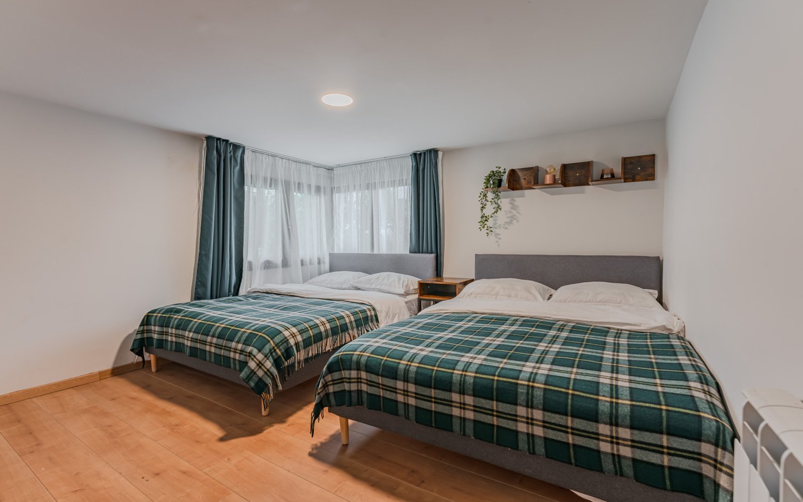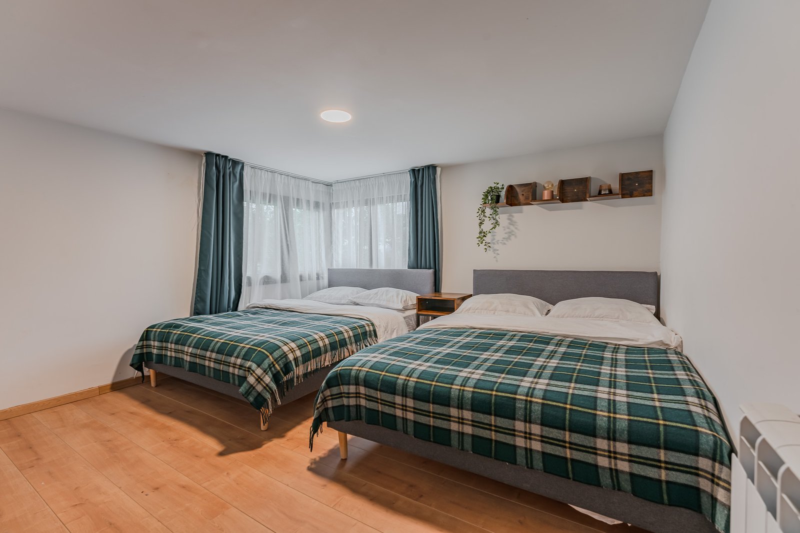 Situat la etaj, Apartamentul Boemia este alegerea ideală pentru familii numeroase sau grupuri de prieteni care doresc confort și intimitate într-un cadru montan deosebit. Spațiul generos include două dormitoare luminoase: unul dotat cu două paturi matrimoniale, iar celălalt cu un pat matrimonial și o canapea extensibilă, oferind astfel loc suficient pentru până la opt persoane.
