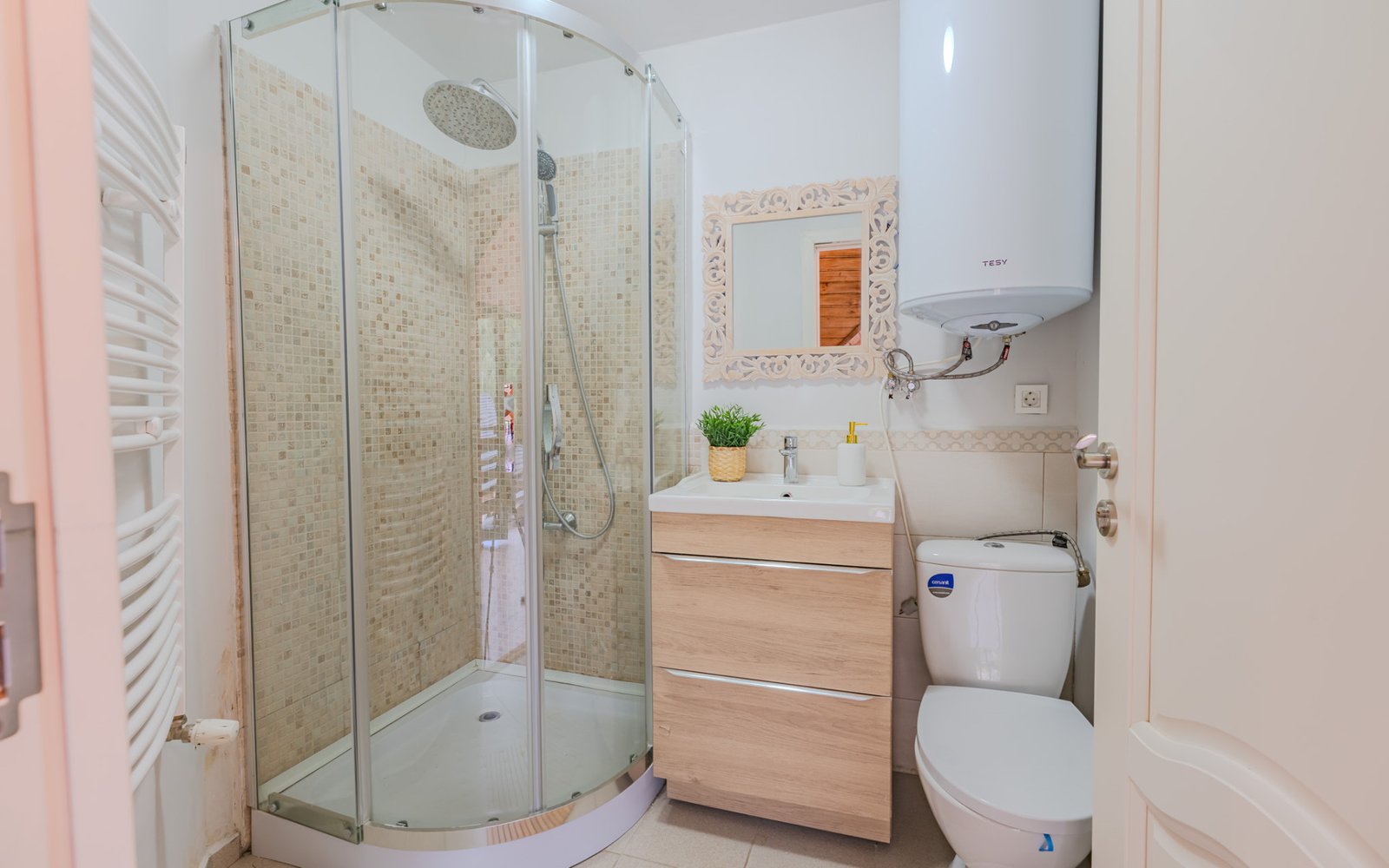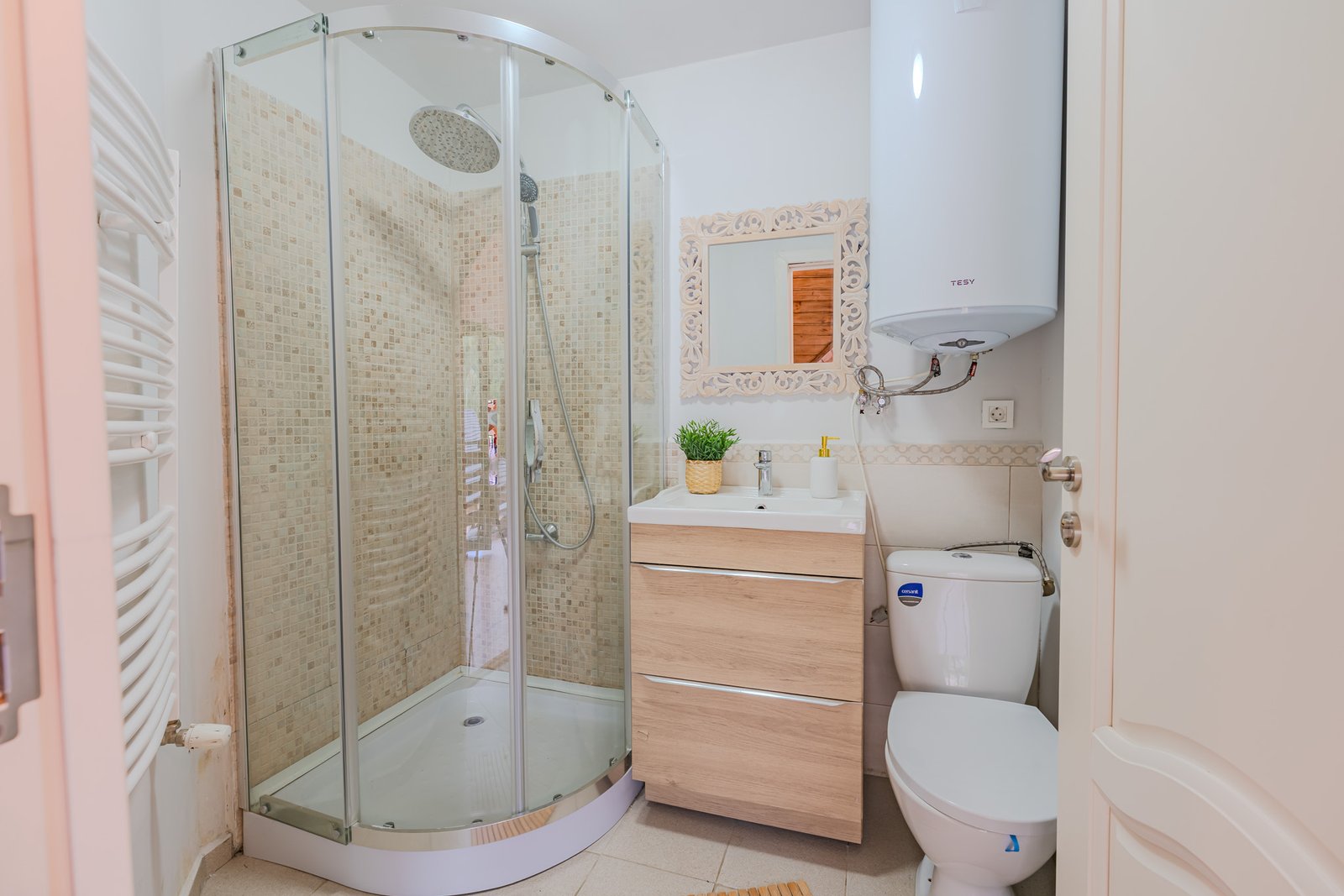 Apartamentul dispune de baie proprie modernă, finisată elegant, precum și de acces la o bucătărie complet echipată, amenajată la exterior, alături de zonă de grătar și proțap, unde oaspeții pot pregăti mese delicioase în aer liber. Livingul aerisit și designul interior îmbină funcționalitatea cu atmosfera caldă, făcând din Boemia un spațiu unde te poți relaxa după o zi de drumeții sau de explorat împrejurimile.